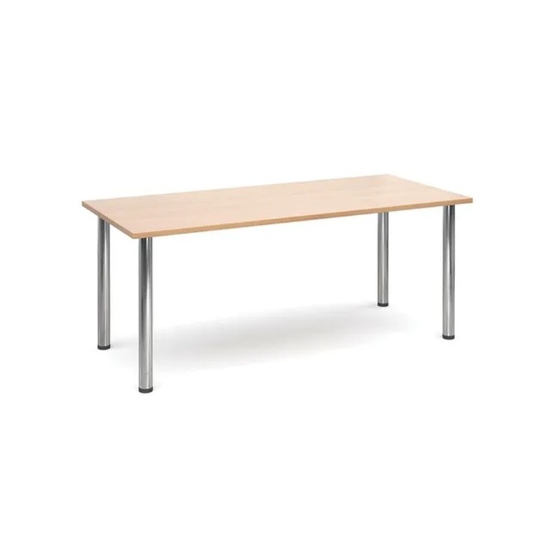 Mesa de formica de 80x120 cm, fabricada con cubierta de mdf de 30mm de espesor, con forro 1 cara en laminado plastico tipo formica, con cantos en pvc de 2mm color a elegir, con 4 patas de acero satinado de diametro de tubo de 3". con niveladores ajuste contra piso.