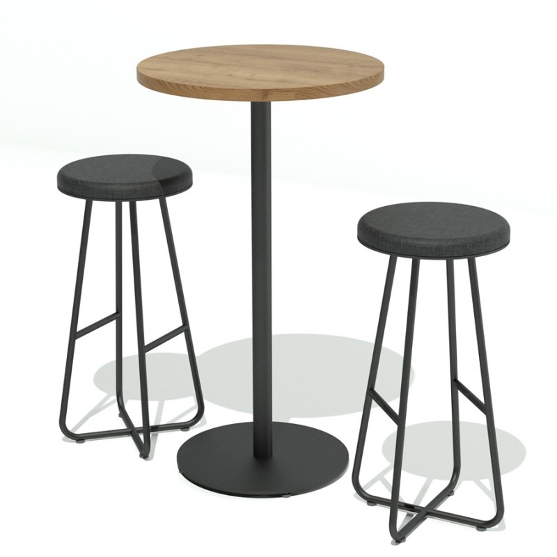 Mesa Alta 60 diámetro base plato. Mesa lata de 105 cm con cubierta de melamina de 60 cm de diámetro, con base de plato disco de 50 cm, con poste central de 2". base terminado pintura electro estática
