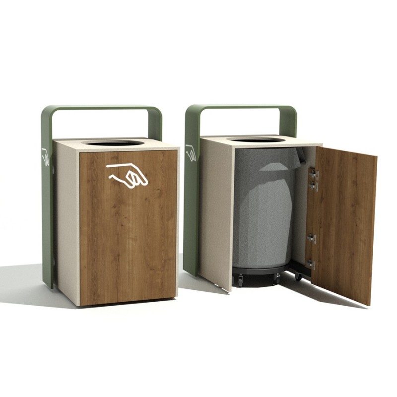 Mueble para alojar contenedores de basura ideala en areas de food Court, fast food comedores industriales, area de comida de alto trafico