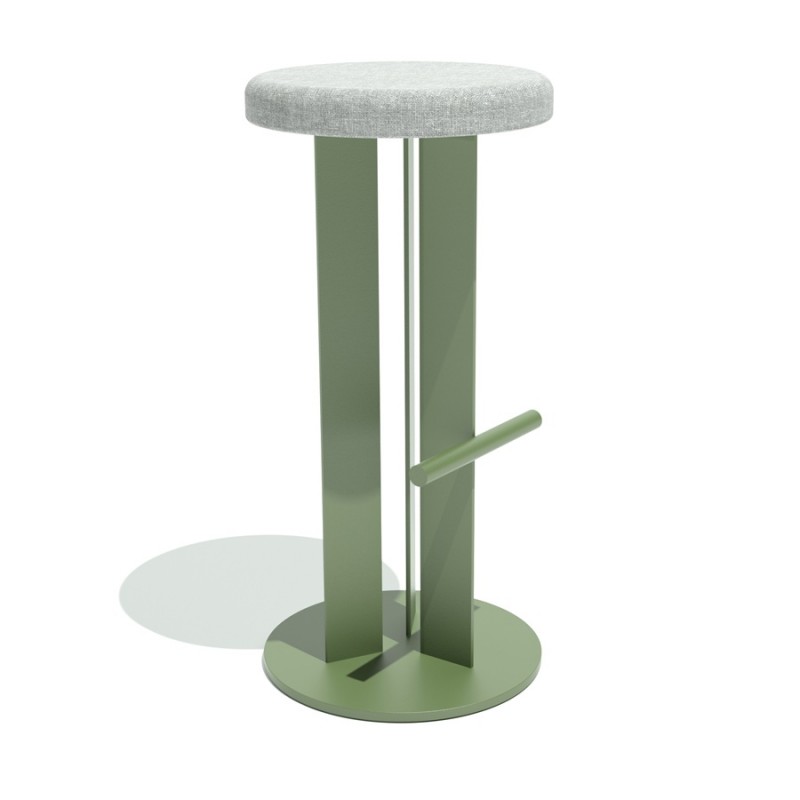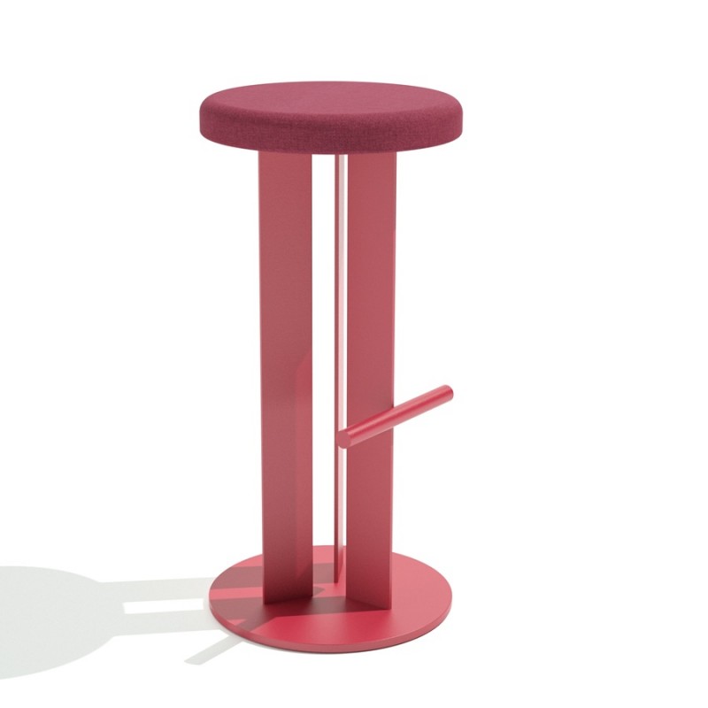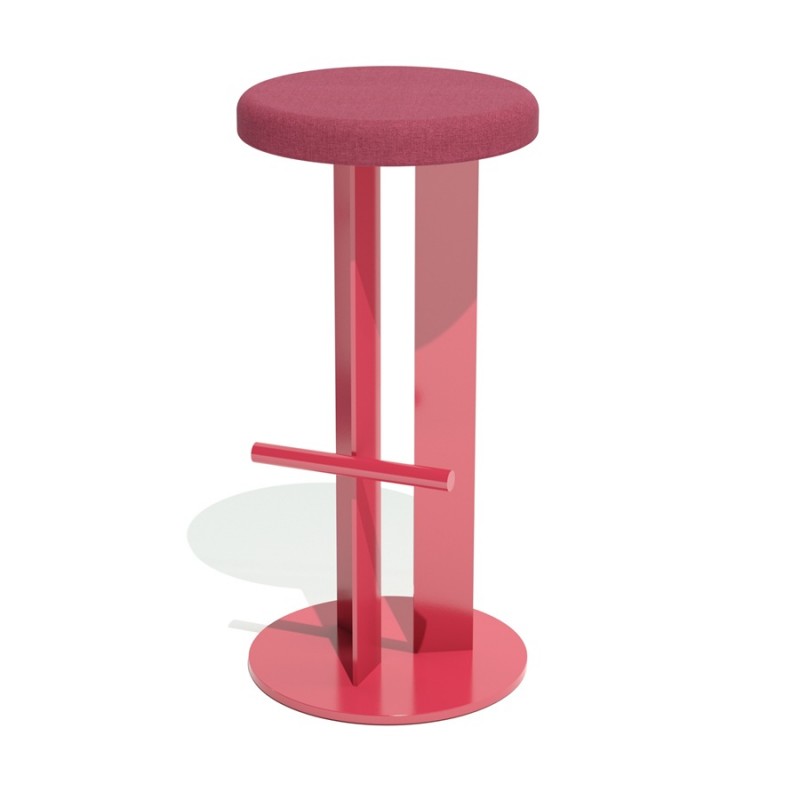 Banco Torro para Bar, fabricado en base de placa de acero de 1/4" con poste central en solera de acero, metal acabado en pintura electro estática y pintura a color de poliuretano, asiento tapizado en espuma de poliuretano, tapiz de vinil marca easy decor.