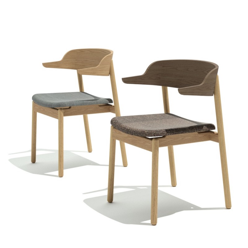 Silla Cielo Bistró, silla fabricada en estructura en madera de fresno solido, con respaldo en madera contrachapeada en capas de fresno. acabado en barniz de poliuretano natural o tinta a elegir, asiento curveado en madera contrachapeada opción tapizado sobre espuma de poliuretano.