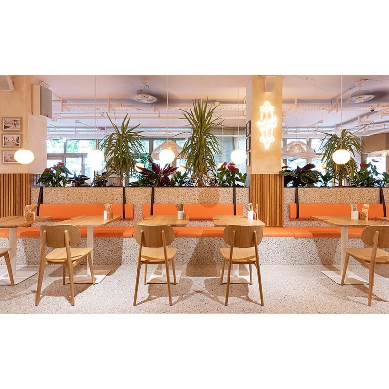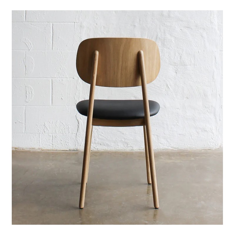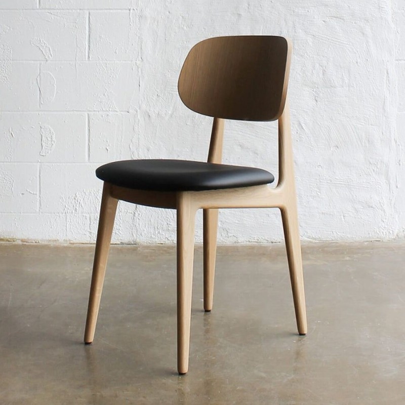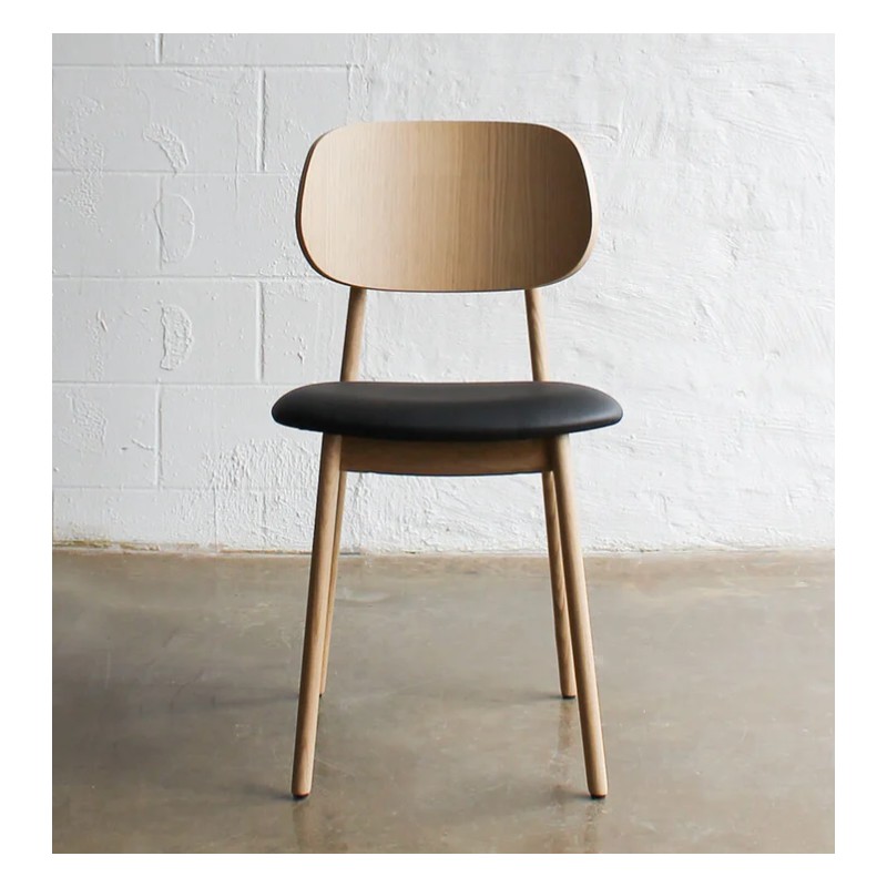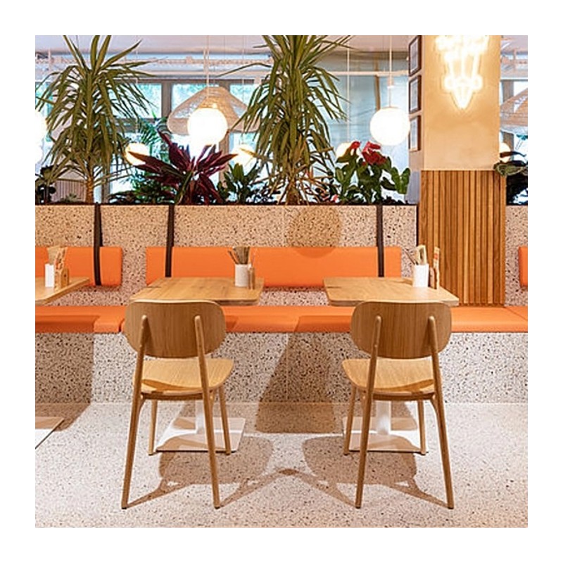 Silla Clotilde de madera para cafeterías. Fabricada en madera de fresno. ensamble escoplo y espiga, con asiento y respaldo en madera contra chapeada, acabado barniz de poliuretano mate