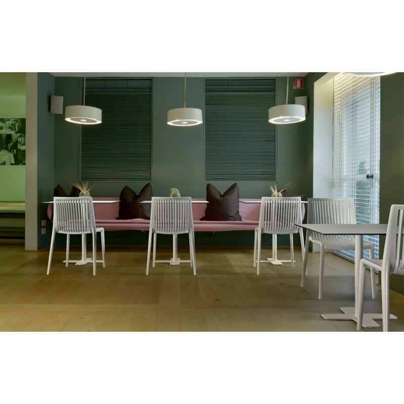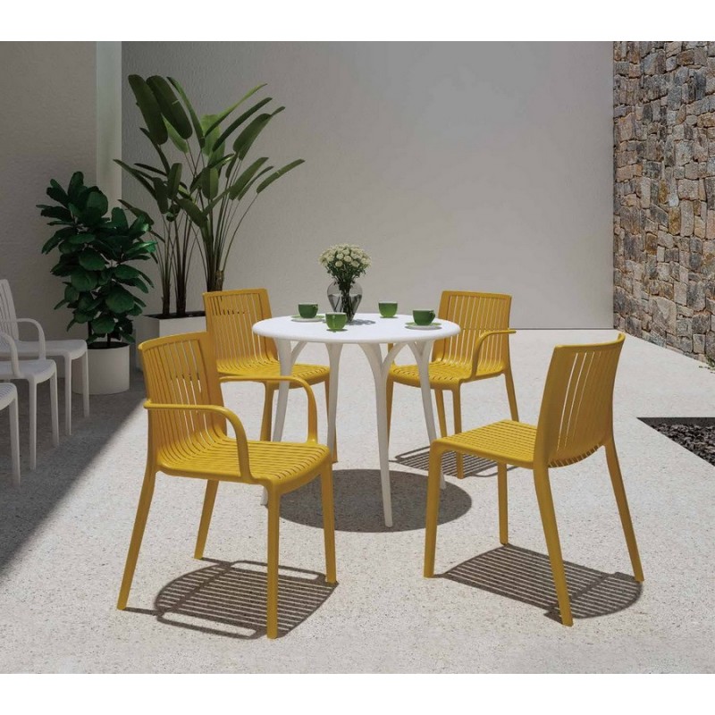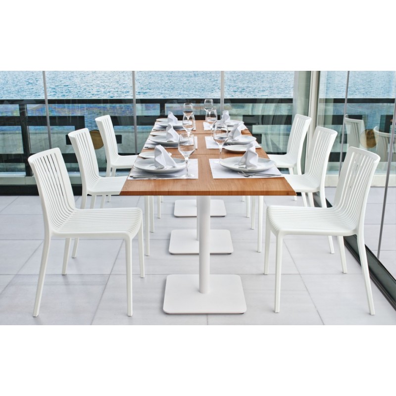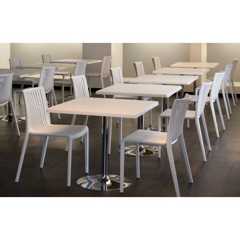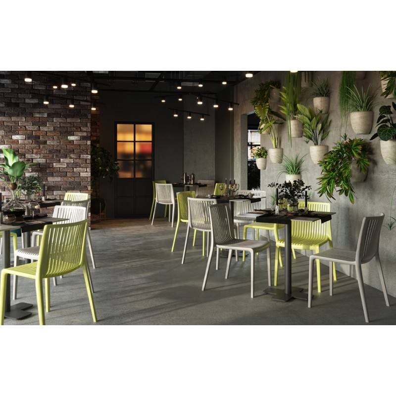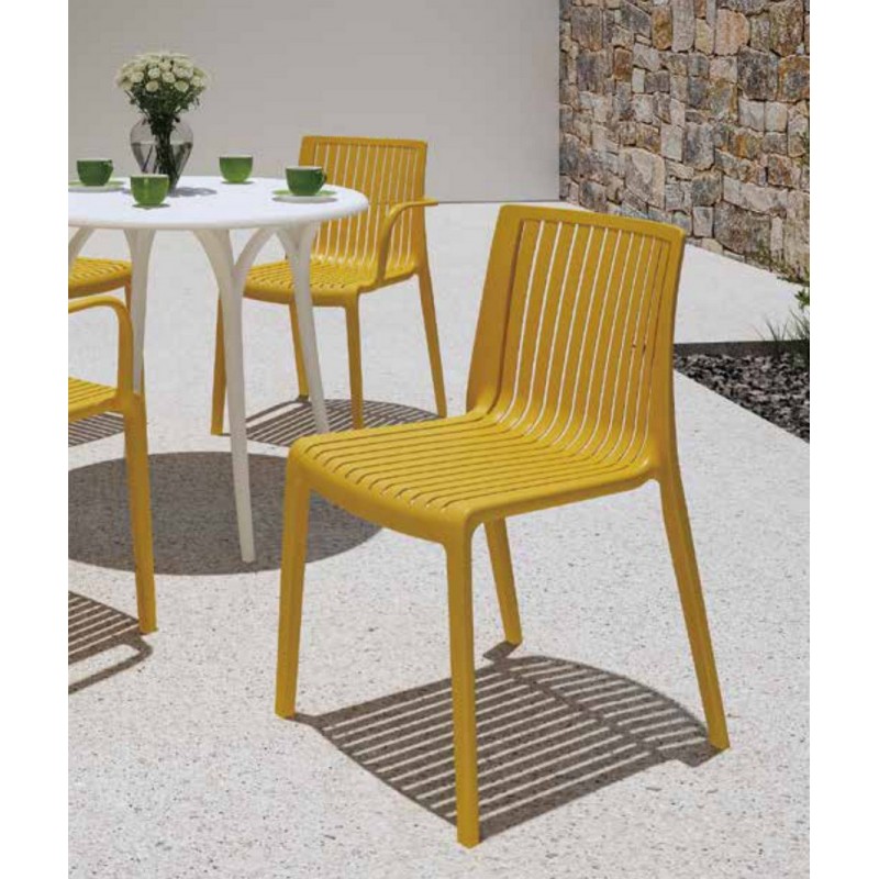 Silla Milos de plástico apilable usos múltiples; uso rudo intenso: fabricada en polipropileno en asiento y respaldo de una pieza, en colores a elegir.
