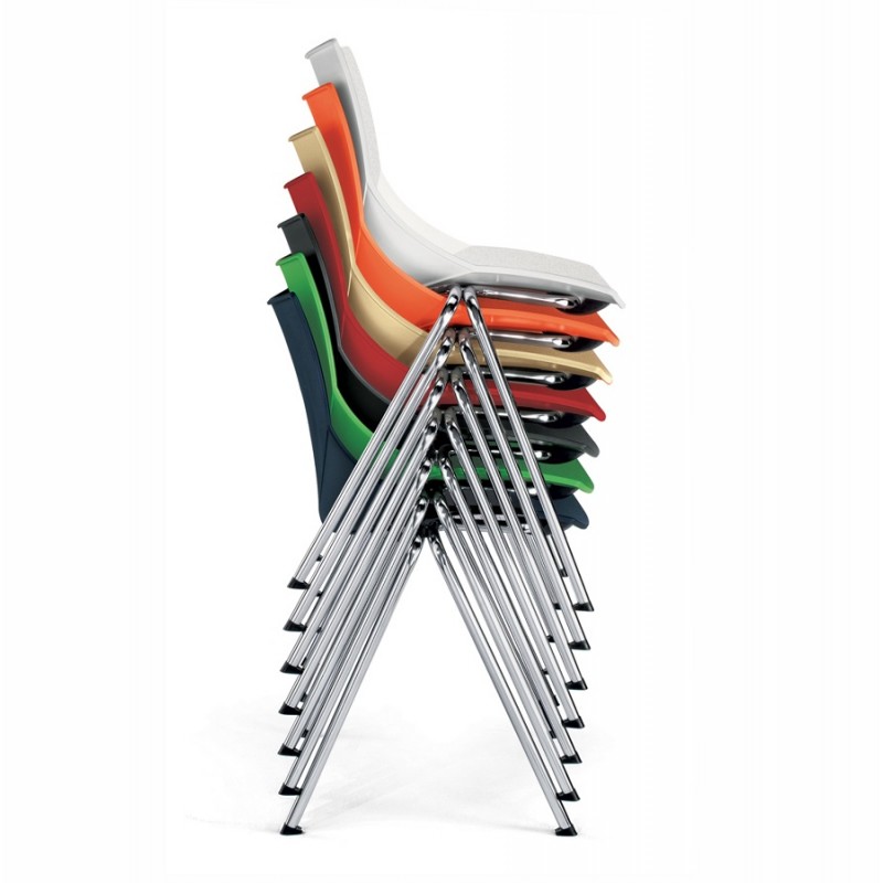 Silla de plastico apilable, fabricada en estructura de acero cromado, con asiento y respaldo en una sola pieza, en varios colores a elegir.