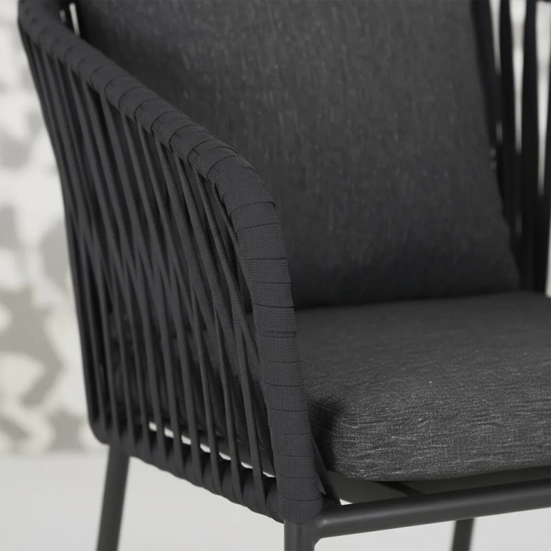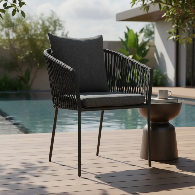 Silla tejida con agujeta con material sintético, estructura de acero acabado pintura electroestatica negro, cafe, beige o blanca.